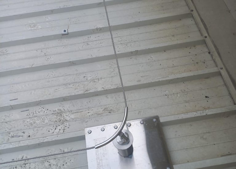Diseño e instalación de sistema de protección contra caídas conforme a normativa vigente, garantizando desplazamientos seguros y continuidad operativa en trabajos en alturas.
