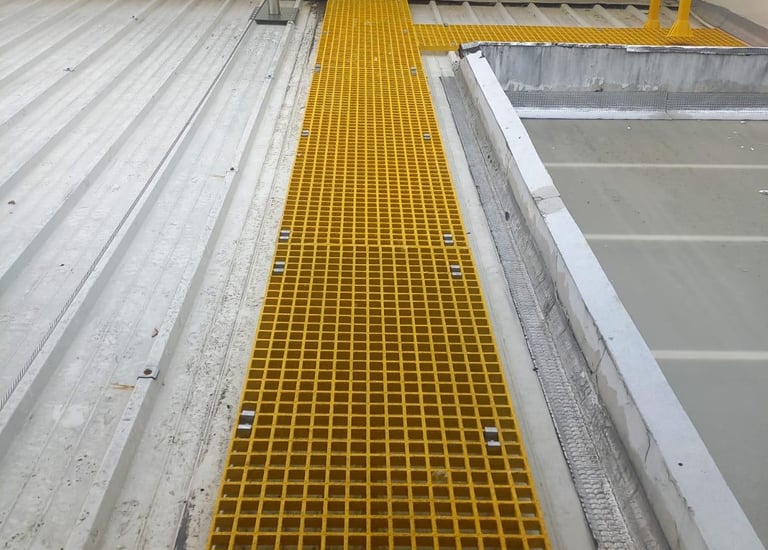 Diseño e instalación de pasarela en PFRV resistente a la corrosión y de bajo mantenimiento, optimizando la seguridad, durabilidad y operación en ambientes industriales agresivos.